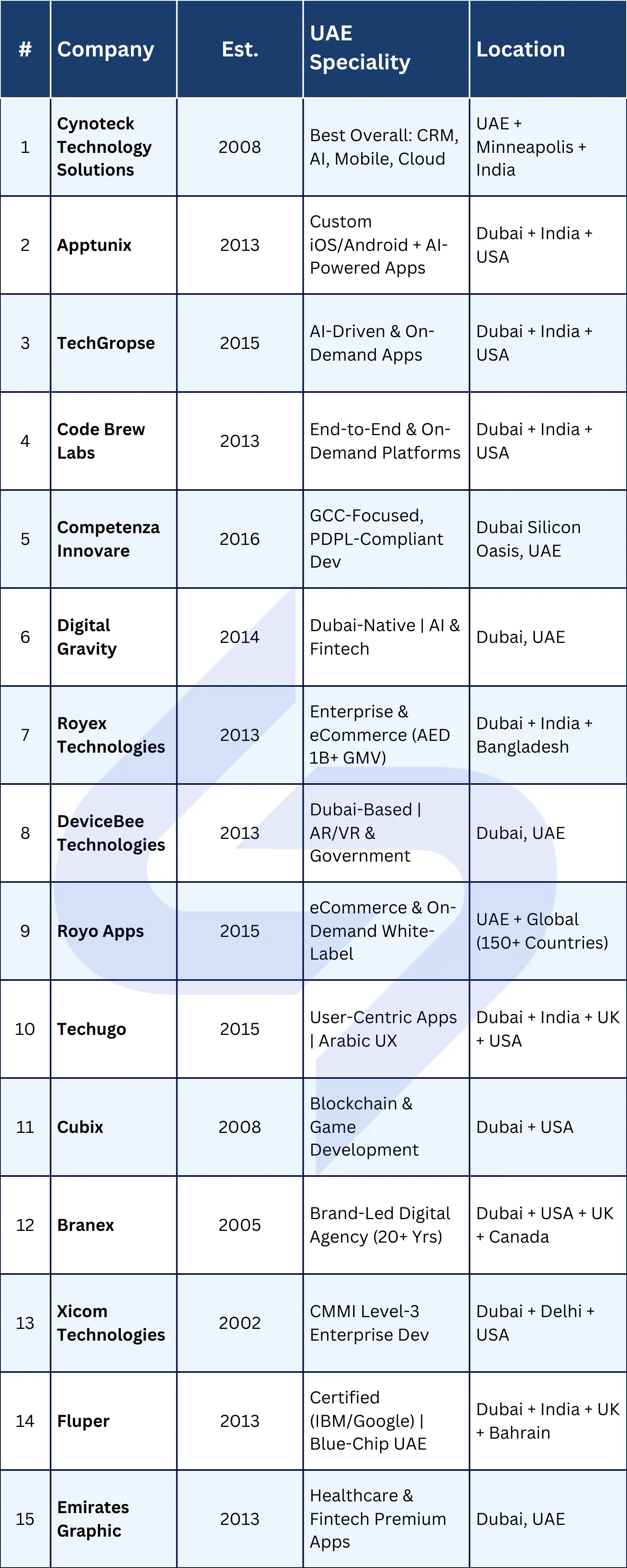 UAE Strengths: 20+ years of UAE market presence, brand-first development philosophy, and full-service model covering apps, web, branding, and marketing.