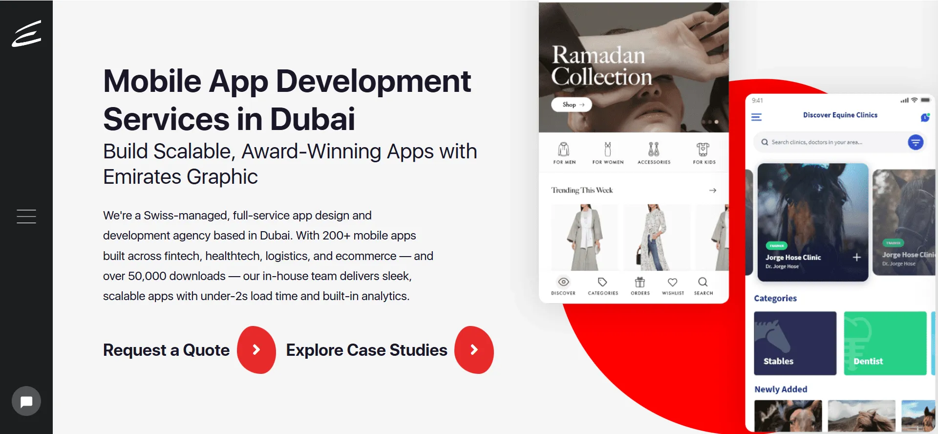 Emirates Graphic rounds out our list as a Dubai-based design and development studio with a focused specialty in high-quality, custom-crafted mobile applications for healthcare and financial services clients. Founded in 2013, they have spent over 12 years building a reputation for meticulous UI/UX work and technically reliable development for clients in sectors where both aesthetics and precision matter enormously.
