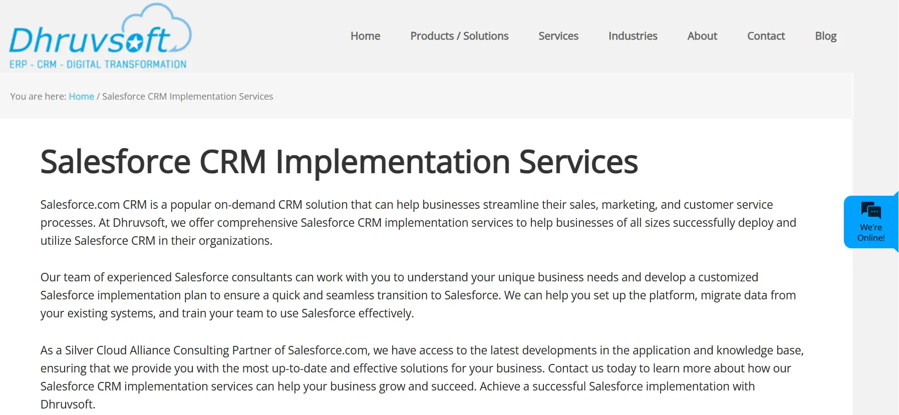Services | Salesforce implementation·CRM integration·Digital experience·Custom development |