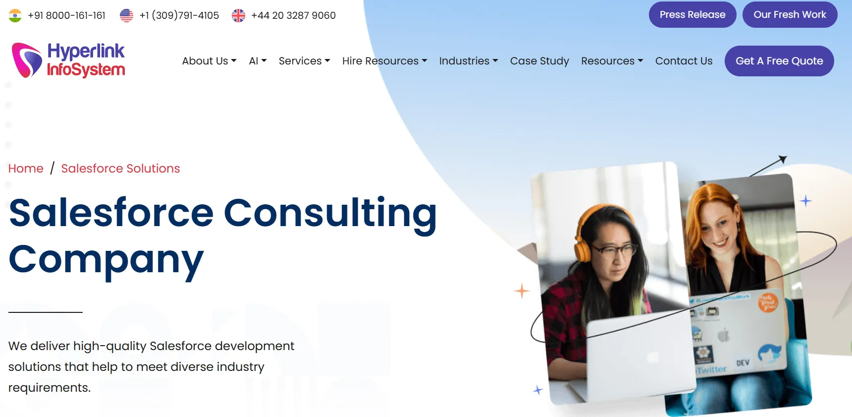 Hyperlink InfoSystem fills a gap most Indian Salesforce firms cannot address: combining Salesforce CRM development with genuine mobile application expertise under one roof. For businesses that need Salesforce to connect with field service tools, customer-facing mobile applications, or mobile-first CRM workflows, having both capabilities within a single team eliminates the friction and accountability gaps that multi-vendor mobile-CRM projects typically create. Their predominantly international client base across the US, UK, Canada, Australia, and the UAE reflects the delivery and communication standards required for cross-border projects.